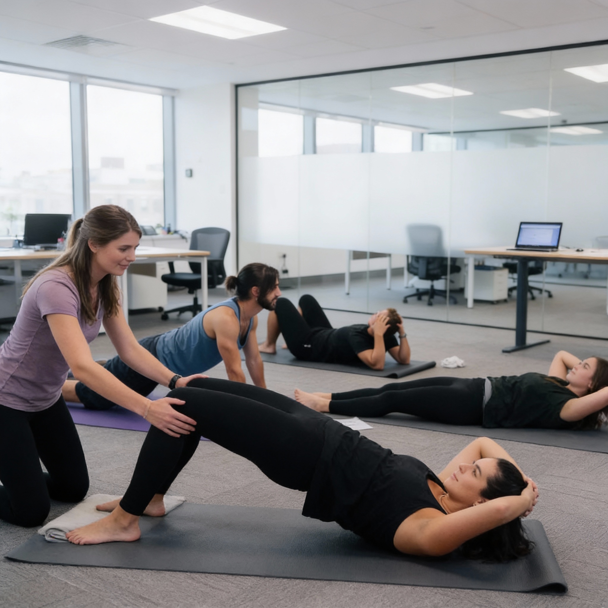 Les séances en entreprise sont conçues pour intégrer le Pilates dans le cadre professionnel.